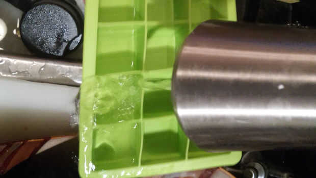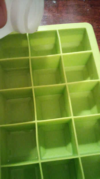 Comience agregando vinagre a la bandeja del cubo de hielo. Llene cada recipiente para cubos de hielo con mitad vinagre