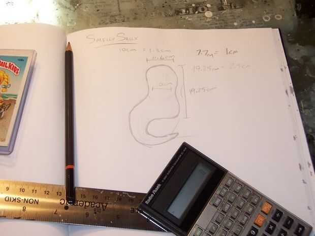 Lo primero que hice fue hacer unos bocetos basados en la tarjeta. Puedo dibujar bien. Pero por favor no juzgues mis habilidades de este cuadro. Usé una pequeña regla para obtener las medidas de la tarjeta y utiliza las proporciones y las dimensiones de la cabeza de la muñeca para determinar el tamaño de la escultura general. Pensé 1cm en la tarjeta de Igualada 7,7 cm en la escultura. A pesar de que estoy en América suelen utilizar el sistema métrico. Sólo tiene más sentido. Creo que Estados Unidos deberían adoptar el sistema métrico oficialmente.