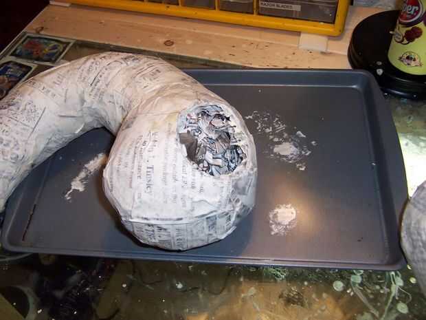 Ya que mis bolas estaban ahora seco pude conectar la bola del cuerpo a la cola. Con una navaja corté un agujero en la pieza de cola a aceptar la bola del cuerpo. Usé algunos pegamento y mucha cinta. Es importante darle al cuerpo una forma agradable de reloj de arena. A continuación, marcado y ajuste el agujero para la cabeza. No pude hacer los brazos bastante todavía porque necesitaban a un periodo específico para que el brazo izquierdo quisiera tocar el coche sardina correctamente. Así que tuve que trabajar un poco más en la lata de sardina, particularmente el rodillo y la clave.