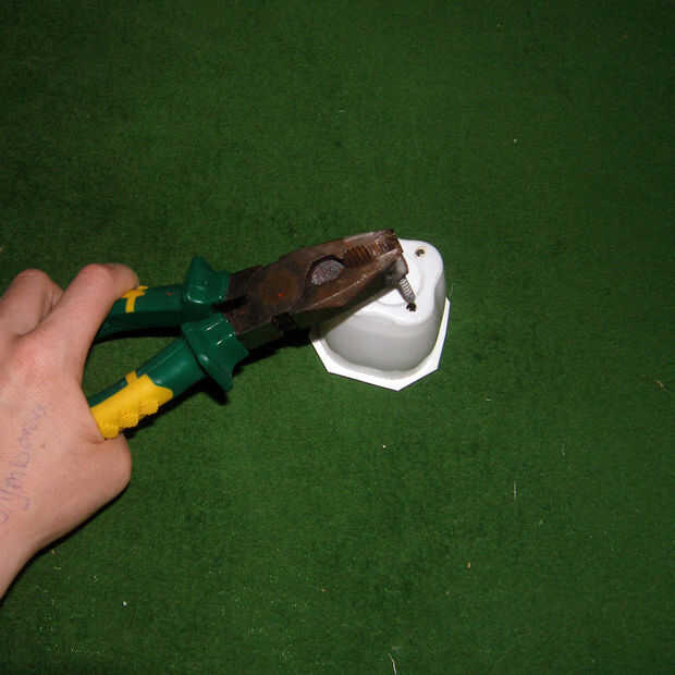 Todo lo que tienes que hacer es poner los agujeros en la parte inferior. Para ello cogió un par de pinzas, calienta un clavo y utilizado para meter 4 a 6 orificios en la parte inferior de los envases. Aunque este proceso no parece crear gases, siempre debe encender un ventilador cuando se aplique calor al plástico, o encontrar una manera de hacerlo al aire libre.