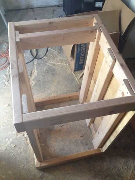 Porque teníamos los empalmes de media caña hay un 3/4 espacio entre los montantes y la dimensión exterior de la base y la tapa, que trabajó perfecto para poner 3/4 capas en como revestimiento. Así que sabía mi bote de basura fue mucho menor que la profundidad máxima del contador, así que pensé que yo podría hacer algún almacenamiento uso del espacio de sobra.
