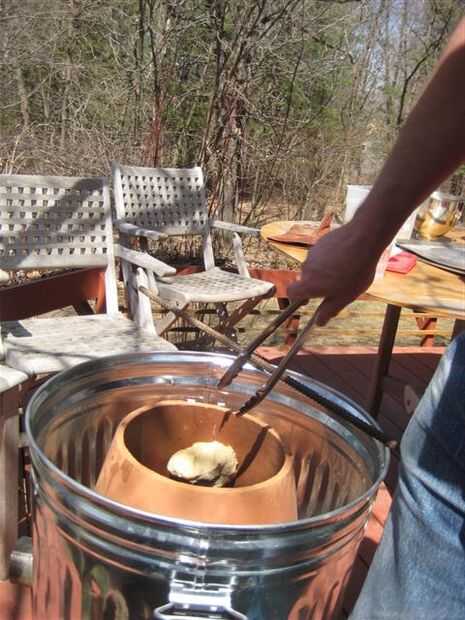 He sido hornear naan en una piedra de pizza en mi horno eléctrico (vuelta para arriba tan arriba como va a ir el horno) durante un año o menos con resultados decentes. Cuando vi tandoor de pote de flor de la lista de John sabía que tenía que construir uno.