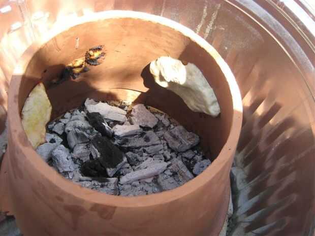 I formado pequeños panes redondos, tirado en un guante del fuego, establecer una hogaza en el guante, espolvoreado el pan con un poco de agua y abofeteó el pan en el lado de la olla. Después de unos minutos sacó el pan al horno la olla con pinzas largas. Los panes están resultando feo hasta ahora, pero imagino que podrá llegar con el tiempo. Yum!
