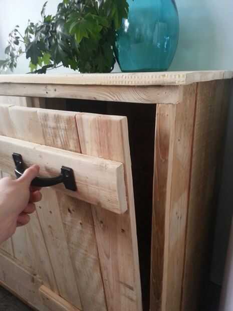 Si usted quiere que sus puertas se incline hacia fuera, tornillos en un pequeño piso de OSB con algunas piezas de la plataforma en forma de triángulo para mantener Unidas (profesional sonando, yo sé!) Probablemente desee hacer algunos buenos tornillos para que la pieza de "planta" puede soportar el peso de una basura completa.