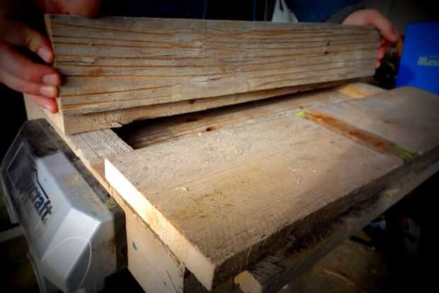 Yo habría utilizado tornillos para este proyecto, excepto que sólo tenía un puñado de ellos, y yo tenía cubos llenos de clavos galvanizados. La madera de la plataforma que reclama fue muy difícil y las tablas eran propensas a agrietarse por lo que se taladraron previamente la mayoría de mis agujeros de clavo (con una broca de diámetro pequeño). Esto hizo mucho más fácil para mis ayudantes a golpe de las uñas hacia abajo.