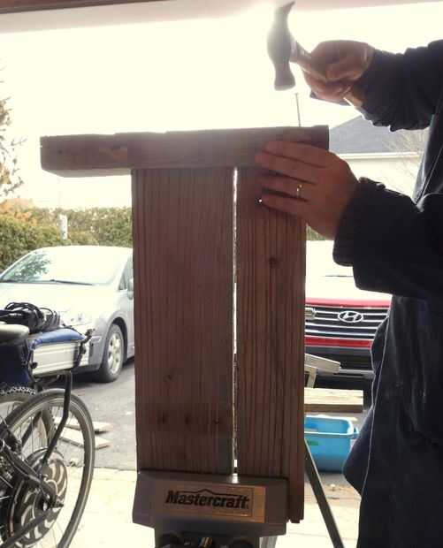 - Voltearlo y clavar la pieza de lado; verificar los cortes de cubierta inclinada en el mismo extremo.