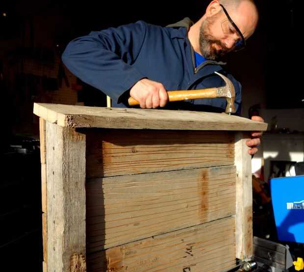 - Clavo el techo en la parte superior; Asegúrese de que esté al ras con los tablones de la espalda (todavía no instalados).