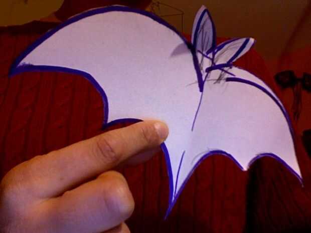 Corte hacia fuera a la mitad, luego doblar por la mitad para asegurarse de más o menos reflejado en el otro lado. Tuve que ajustar las orejas y las puntas de las alas en la mía. Luego, termine cortando el palo.