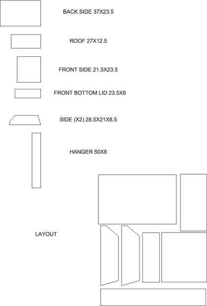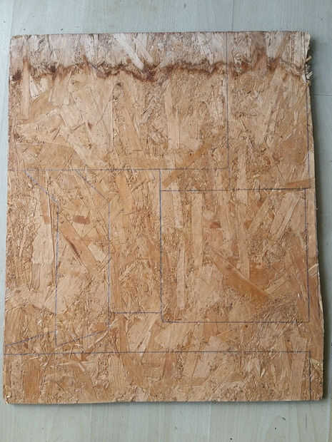 Mida dos veces, corte una vez. Estas son las dimensiones de las piezas y las piezas transferidas sobre el osb. Asegúrese de que hacer cortes rectos. En conjunto, la luz debe mantenerse, así un empalme recto firme es necesario. La pieza tenía era 52x63cm, que era más que suficiente.