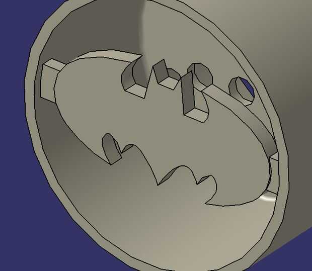 Pediste, bueno no realmente, solo JerryBYong pero que es semántica y es aquí: un barril con el logo de estilo Dark Knight. Hay una foto arriba y abajo del fichero .stl.