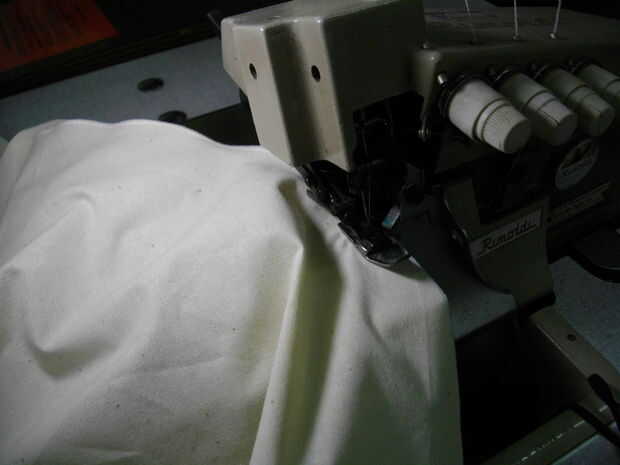 Para preparar la tela estática, básicamente vas a hacer un círculo grande de tela, doblar el exterior cm dos veces, entonces pin y coser doble en lugar. Doblar-sobre impedir que se deshilachen y hacer los bordes un poco más fuertes. Primero lo hice con un círculo de 1,5 m de diámetro, pero después de la celebración en la señal de murciélago con ayuda de un amigo, decidió hacer un poco más pequeño. No sé el diámetro exacto con que terminó, así que ajuste para adaptarse (preferentemente antes de coser con el fin de no tener que coser dos veces). Como alternativa a la máquina plegable, puede utilizar un overlocker para cortar y terminar la orilla de la tela de una sola vez.