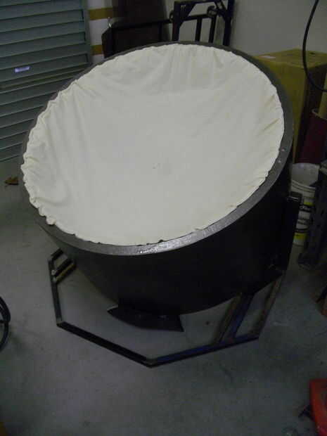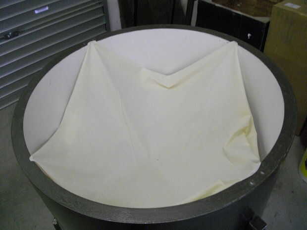 Imaginando el círculo superior del tambor como un reloj, grapa el borde del círculo de tela estática en 3:00, luego contrario en 9:00 aproximadamente 1 cm desde el borde interior del tambor. Luego engrape la tela 12:00 y 6:00 el tambor respectivos 12:00 y 6:00. Continuar de esta manera, fijar el punto medio de una sección de paño al punto medio de una sección del tambor, hasta que hay poco o ningún espacio entre grapas. Usted está haciendo esto en lugar de simplemente grapado alrededor en un círculo extendió donde la tela se arrugar_, así como ayudar a que la tela cuelgue mejor. Y tiene tantos grapas porque llevará a cabo su peso completo. Durante mucho tiempo.