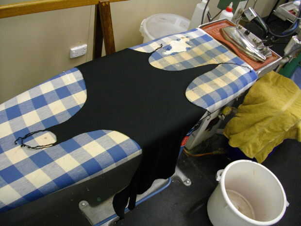 Por último, hierro ambas piezas elásticas para conseguir todas las arrugas y pliegues por lo que te ponen plano el uno del otro cuando se les cosen juntos.
