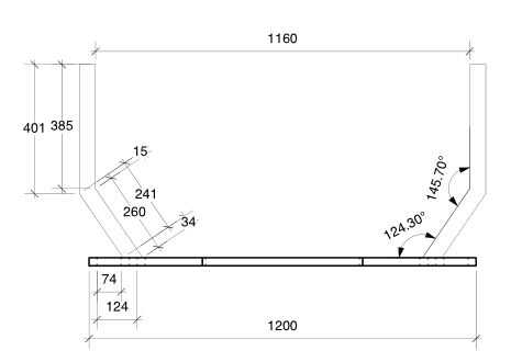 F: 2 a 260mm borde más largo, uno asomándose en 55.7 grados, uno que se inclinan en 72,8 grados (ver dibujo de aclaración)