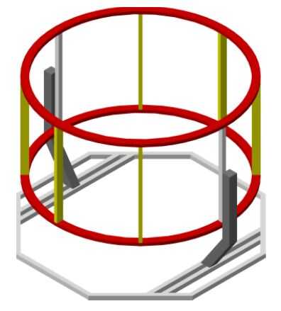 Ahora poner el tambor hasta ahora sobre el terreno, struts apuntando hacia arriba. Poner el otro anillo de madera encima de las costillas para que sus marcas de 1/8 se alineen con los puntales. Ahora coloque los puntales para el anillo superior, estar muy atentos para mantener toda la Plaza de puntales a ambos anillos. Para ello, sugiero a partir de los puntales metálicos, usando su fuerza y rigidez para ayudar a alisar las otras piezas. Revestir el tambor más adelante es mucho más fácil si todo es cuadrado, así que tómate tu tiempo.