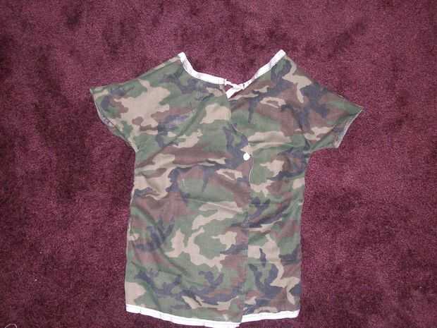 Ubicar puntos coincidentes en los bordes de las piezas de la espalda, sobre mitad del camino centraa abajo de la espalda y coser un lazo a cada lado.
