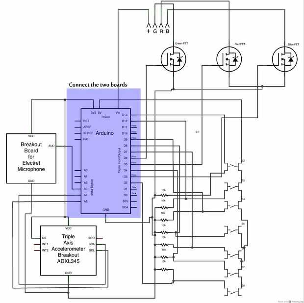 Está en la recta final. Ahora usted sólo necesita tomar las conexiones que se reunieron en la Junta anterior y ejecute el cable para cada uno a la arduino.