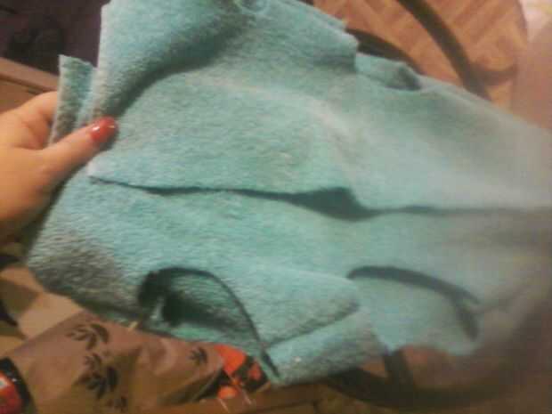 Gire las piezas boca. Si desea agregar un botón para el cierre o Velcro puede hacerlo ahora. Generalmente hago haciendo lo ropa, pero ya que este es un traje que decidí hacerle un cinturón. Para hacer el cinturón que sólo de cortar el borde de la toalla de así que era un pelín más amplio entonces la longitud de su vientre era a dar espacio para un pequeño nudo con.