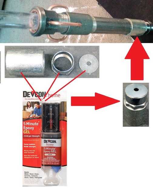 Pegamento, Epoxy o soldar con autógena junto un 1 pulgada completa de acoplamiento, la abrazadera de tornillo plateado y la arandela.