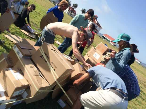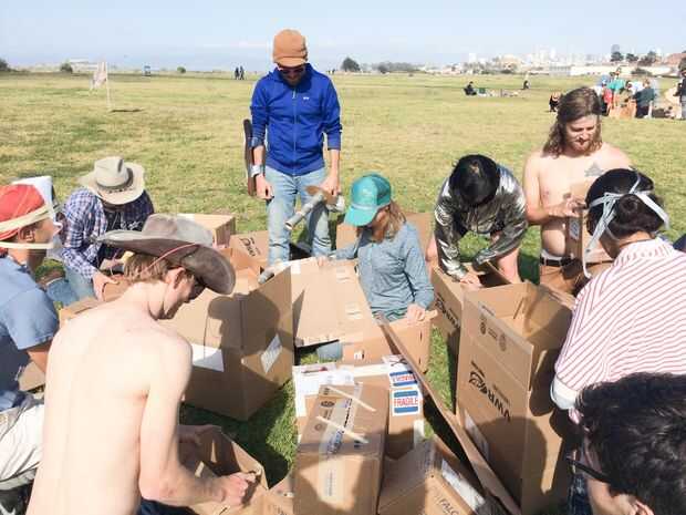 Como se indica en el Reglamento, cada equipo obtiene cinco minutos para construir sus fortalezas con la bandera en algún lugar dentro. Solamente puede usar cinta adhesiva y no "momificar" como caja, lo que significa totalmente cubierto en cinta. No te preocupes ellos demasiado, como estos Haz diezmaron pronto.