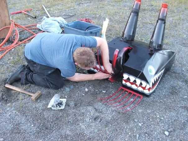 Cuando mi amigo Paul se trasladó hasta Kitimat como estudiante de verano fue obligado a dejar a su niño amigo campana detrás de la Margarita de su perro - aka su kryptonita. Ahora igual que cualquier grupo de hacer amigos, al iniciar su aburrido haciendo chistes de mamá. Siempre decidió escoger su nacionalidad como los padres de Pablo son de Irlanda. Su madre beber baileys en la cocina, hasta que fueron siempre buenos para partirse de risa a costa de Pablo. El concepto detrás de todo esto es a semi-convencer Pablo que nos nos convenció de su mamá en un estupor borracho a fed-ex su perro, para aliviar su mal inicio. La Margarita ver a continuación fue construida de un estilo de aviación corte esqueleto de madera, forrado con cientos de cartón escamas caliente pegados a forma y escala. Tuvo que dar el crédito de la oficina postal local como me dieron las etiquetas de correo oficial gratis para publicar todo sobre él. El paquete de Margarita entonces se colgaban boca abajo en una barra larga, forzando a Pablo a usar sus propias armas robots en su amigo de la infancia querida en mi robot. CUE la risa mal, muuuwawhahahaaaahaahaaa.