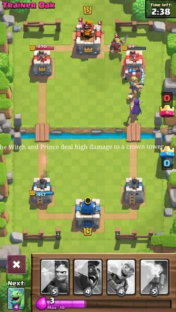 Implementar dos tropas. Un príncipe frente a una bruja funciona muy bien. Un gigante frente a un globo protege el balón del daño y le permite destruir las torres de la corona. Experimentar y encontrar sus propios combos para ganar!