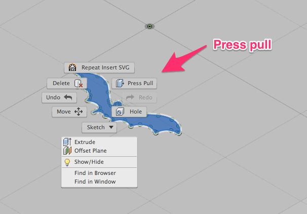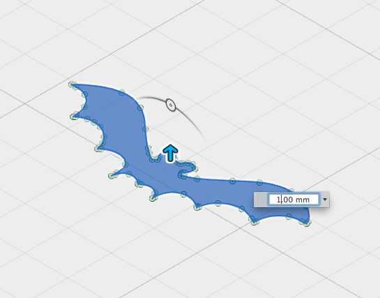 El archivo .svg es en un espacio 3D, pero sigue siendo una figura en 2D. Para hacerlo en 3D y darle volumen, tenemos que levantar un poco. Aquí está cómo: