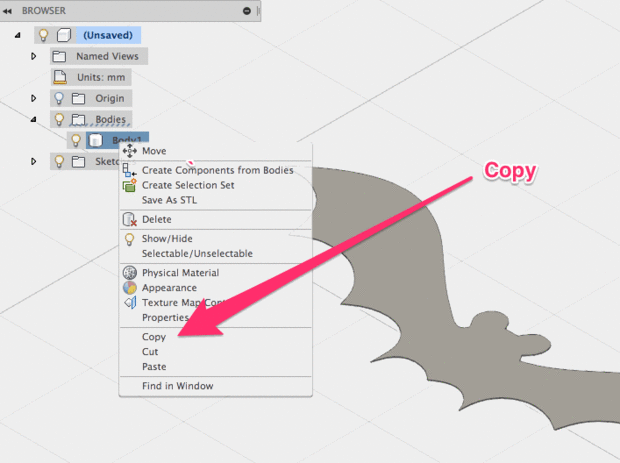 2. Haga clic derecho en "Body1" para abrir el menú.