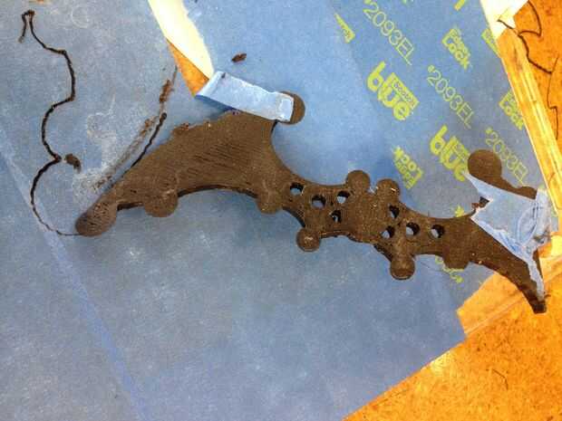 Desmontaje del modelo impreso desde la plataforma de impresión es a veces difícil basado en ajustes de calor y el tipo de modelo impreso. Cuando se imprime un ancho y "corto modelo" es el más difícil de quitar y puedes ver algunos de los problemas encontrados al intentar quitar el batarang impreso y también quitar la cinta de pintor azul.