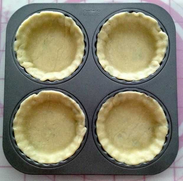 Rollo de masa de pastel lo suficientemente grande como para cortar círculos para adaptarse a tus sartenes mini pastel, o en una ronda de 12 pulgadas si haciendo una tarta de 9 pulgadas.