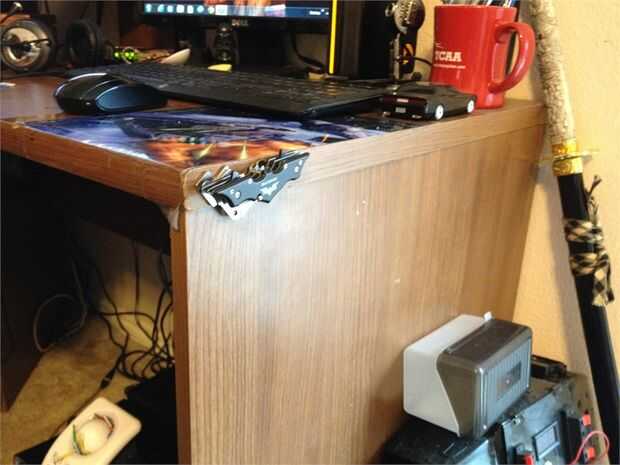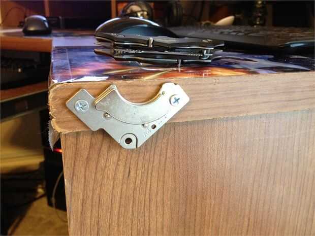 A continuación, necesitaba un imán fuerte. Por suerte, me encontré con este instructable de beazy55555 enseña a tirar algunos imanes de neodimio bastante de viejos discos duros. Después de seguir el instructivo que tuve un imán de neodimio de forma agradable, que tenía una abrazadera con tornillo agujeros ya montados. Os adjunto el imán al lado de mi escritorio con unos tornillos pequeños.