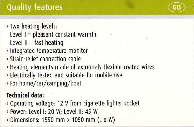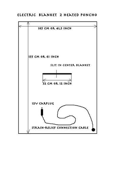 ¿qué es mejor, una sala de calefacción o calefacción a ti mismo? Cuando usted está pensando en la última opción, tengo un método muy sencillo. Se puede utilizar una manta de 12 voltios. Lo único que tienes que hacer es hacer una hendidura en el centro de la manta, para poner su cabeza a través de. Y un collar alrededor del orificio de costura con una tira de tela en contraste. Para cerrar ambos lados, utilizar Velcro. Con una batería de lead(gel) de 12 voltios de 12AH puede ser caliente durante algún tiempo. http://www.safarana.com