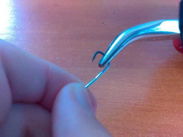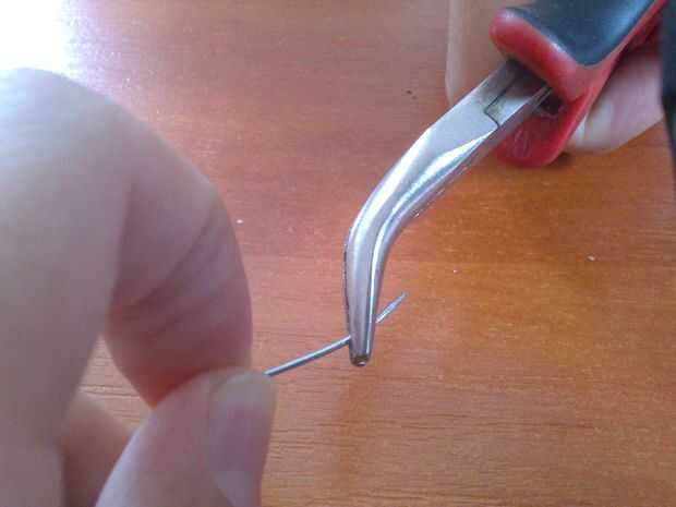 Sus alicates y su pin y una curva en el extremo del perno.