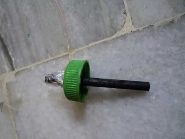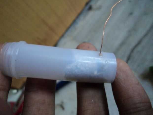 La lámina es ahora - acaba de tomar dos cables y conectarlos a los dos electrodos. Use pegamento para que sea a prueba de agua.