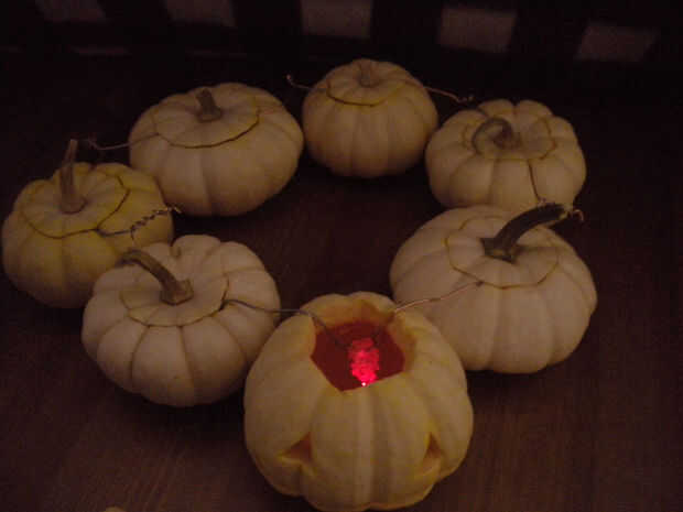 Usted necesitará calabazas miniatura (yo usé Baby Boo), sin sabor, gelatina, sal, vinagre y aceite de la tienda de comestibles. Usted también tendrá 18 medidor de cobre y alambre de aluminio, un LED (preferiblemente uno que corre a 1,5 voltios - usé uno que había escarchada en un proyecto anterior), alambre de cuchillas, pinzas, regla y multímetro. En la cocina que necesita una mediana, recipiente, recipiente, olla pequeña, cookie hoja, emparejamiento cuchillo y mellon baller (o cuchara). Si ya tienes las herramientas y cosas de cocina el proyecto debería costar alrededor de $20.