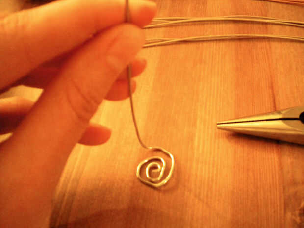 Cortar 6 piezas de aluminio y cobre en tiras de 8 pulgadas de alambre y tomar una pieza de alambre de aluminio y envolver alrededor de sí mismo tres veces. Aplanar el remolino, asegurándose de que ninguno del alambre toca las curvas interiores del remolino (esto aumenta el área superficial para la reacción electroquímica) y doble la parte recta hacia arriba.