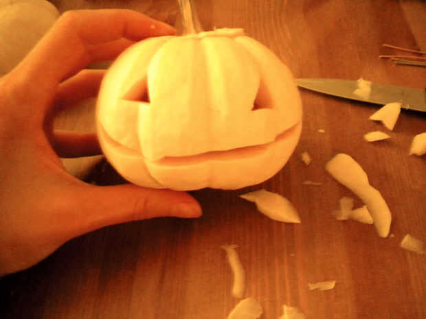 este Halloween después decidí realmente no quería viajar por usar mi derrame de petróleo BP limpiar traje, necesitaba otra idea. Se me ocurrió este proyecto después de ver algunas calabazas de espuma en la tienda de artesanía local.Este es un proyect