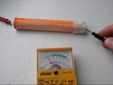 Ahora cuando usted toma una luz de una bicicleta y conecta a la batería, enciende para arriba! No tengo acceso a tal luz en este momento, por lo que he probado solo con mi multímetro. En la imagen siguiente, tenía el medidor situado en una gama de 10 voltios, por lo que como se puede ver llega a 1,9 voltios, que es casi 1,5, que es el voltaje de la batería común y utilizado en casi todos los linternas. Creo que usted podría utilizar esta batería en un aswell de linterna, pero si sólo elimina una moneda, aluminio y papel toalla (juntos una batería), la tensión disminuye un poco, porque las baterías están en una serie. Así que ajustando simplemente el largo un poco, usted puede obtener el voltaje deseado! Si usted doble de la longitud, la tensión de dobles también.