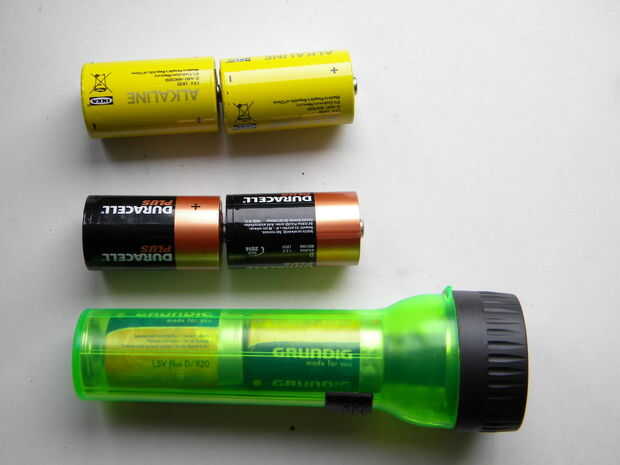 La mayoría las linternas son como por debajo, con dos pilas en una serie. Esta es la forma perfecta para hacer una batería como en este instructable. Si hay lugar para una única batería, la tensión puede obtener demasiado baja, por lo que debe utilizar el espacio con más eficacia, si realizas las capas de aluminio y amargo líquido como delgada un posible, entonces hay baterías más 'pequeño' en la serie, haciendo un voltaje más alto.