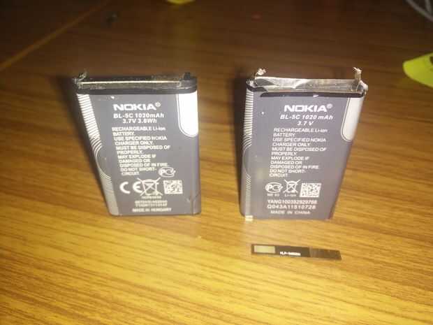 En la figura, la batería de la izquierda tiene su plástico roto, circuito aún por retirarse. El derecho se tiene el circuito quitado.