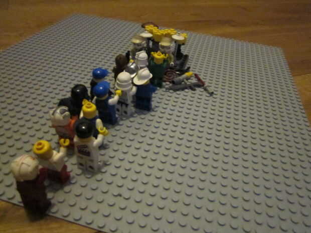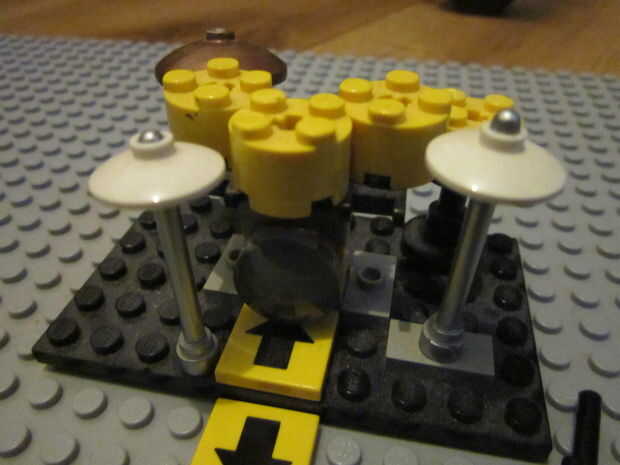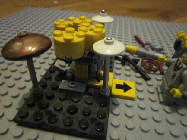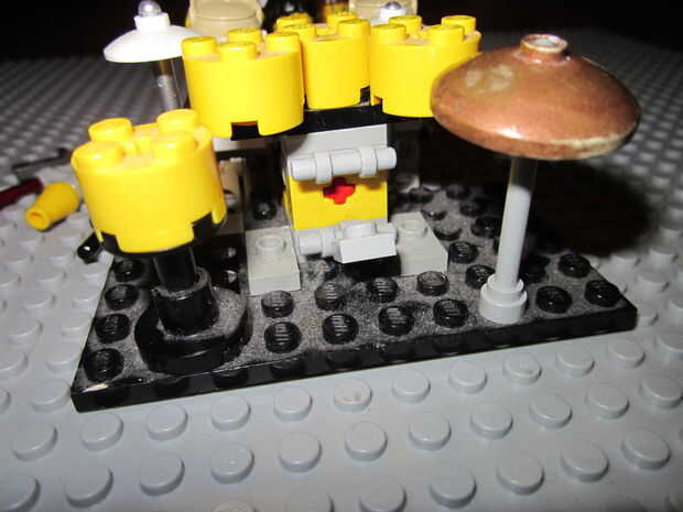 Esta batería de Lego fue SO awsome toneladas de Lego dudes alinean sólo para tomar un vistazo! La materia en el sistema operativo base es conffetti lanzada por la multitud (lo sentimos debe de quitar el polvo antes). Tiene un platillo ride, crash y alto-sombrero, y si observas con cuidado verás un pedal para el pedal base. Espero que os guste mi creación lego!