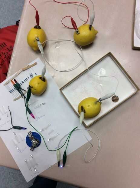 El LED debe brillar en este punto, produciendo alrededor de 5V de la electricidad con cuatro limones.