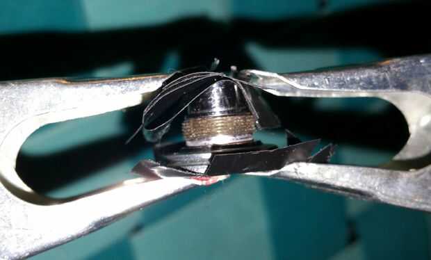 -Utilicé 2 arandelas pero es a gusto. Primero ajustaron las 2 arandelas juntos en la misma forma que los pasos antes, taping, sujeción y espera. Luego me centrado en el conector 510 uniformemente sobre los orificios de la arandela. Esto es clave ya que se necesitan poner algo dentro del conector por los agujeros de la lavadora. Cuando el conector de sujeción es tan suave como sea posible para no doblar o torcer la punta del conector de todos modos.