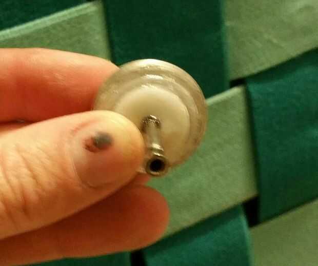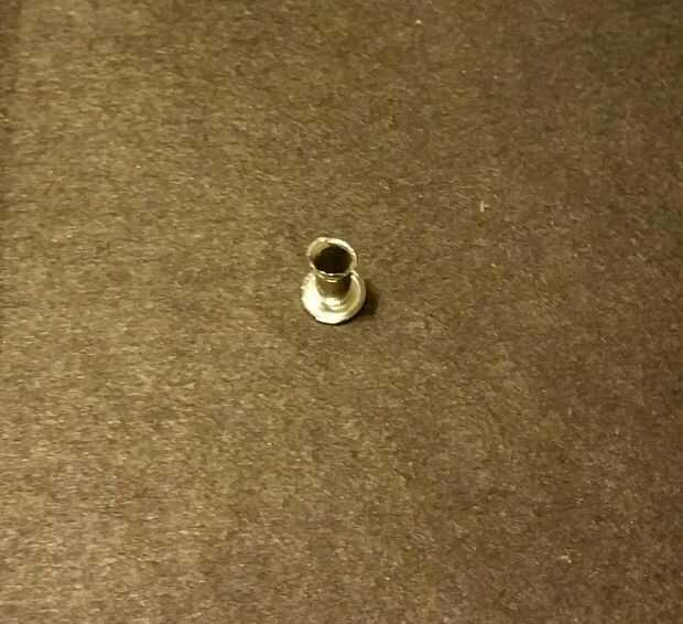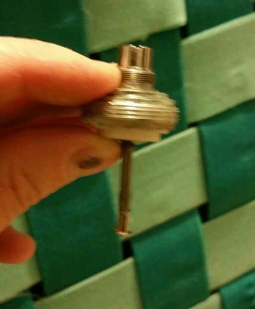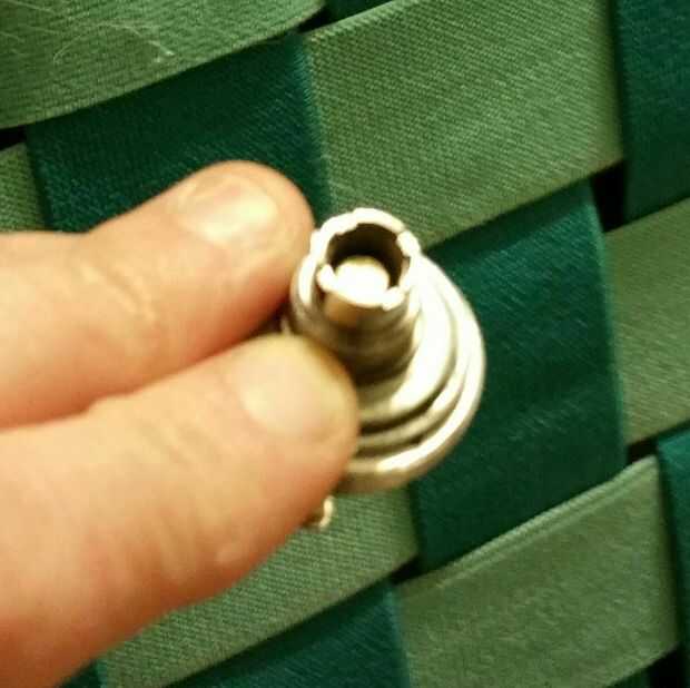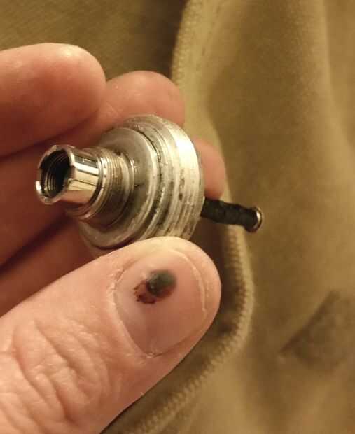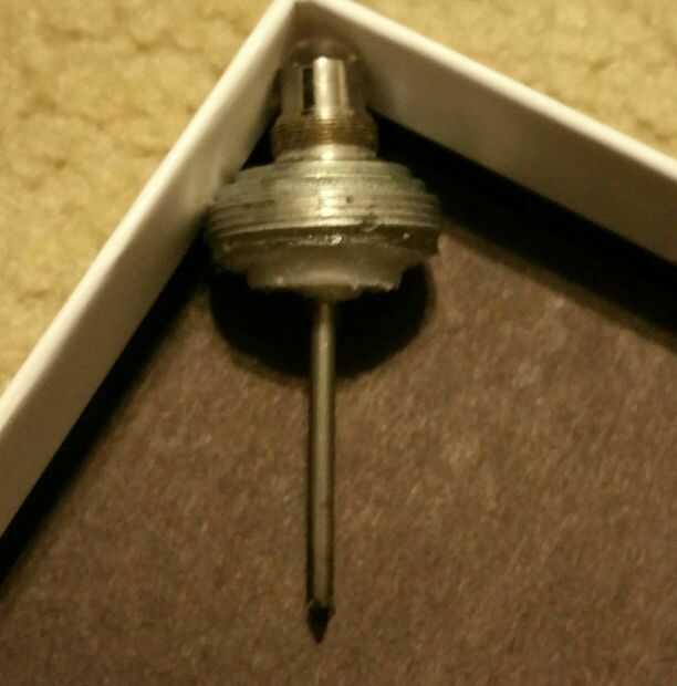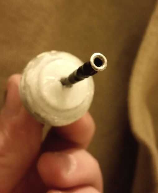 -La longitud del clavo/tornillo no importa como la cabeza de él puede encajar en el conector 510 dentro y tocar el centro. Una vez que tengas tu clavo/tornillo seleccionado tienes que sostener la cabeza de ella con sus pinzas mientras que con los guantes puestos. Tomar el mechero y calentar la punta del clavo/tornillo hasta el rojo vivo. A continuación tome el clavo/tornillo y perfora la tapa de lentes punta primero a través de la arandela de la linterna y luego los lentes tapón luego el centro del estabilizador. Deje el fresco clavo/tornillo y posición para que la cabeza toca el interior de la conexión 510. Suavemente el clavo/tornillo de epoxy en su lugar y apartar para secar. {NO LA ABRAZADERA O CINTA ESTA PIEZA}