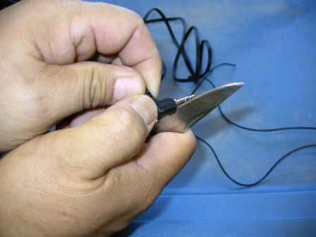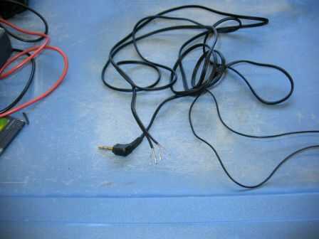 El cable de audio tiene cuatro cables, correspondientes a izquierda, derecha y mezcla, creo. Decidí utilizar mi propio hilo, tomado de un adaptador de alimentación de 5V. Puede ser que puede conseguir lejos con no hacer caso de los cables va a la parte media del gato (mezcla izquierda y derecha) y conectar a la batería con la izquierda y derecha los cables directamente. Ahorrarían un montón de problemas.