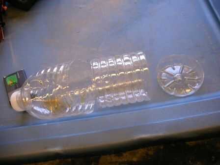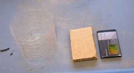 Usando una botella de agua plástica de PET, hacer una funda para cubrir la batería y mantenga el alambre en su lugar.