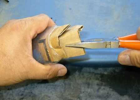 Colocar el maniquí en el cilindro de plástico, luego utilizar una pistola de calor para encoger el plástico sobre el cartón. Utilice alicates o pinzas para sujetar el cartón, ya que será demasiado caliente para las manos.
