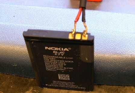 Los contactos de la batería están empotrados, y es peligroso soldar directamente en una batería. En cambio, la funda de plástico sujetarán los cables en su lugar por presión solamente.