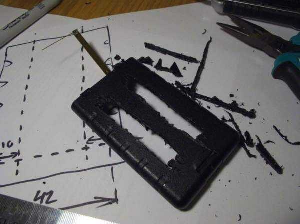 La caja de corte se puede hacer usando una Dremel o usando otros métodos. He utilizado "otros métodos", ya que no tengo Dremel.