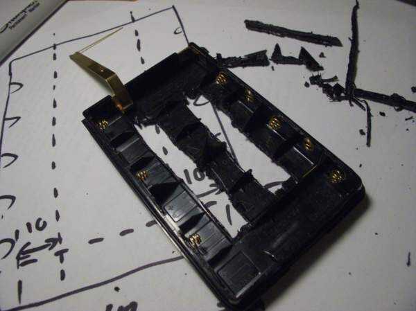 Todas estas operaciones deben hacerse de manera paciente, cortar poco a poco cada vez, si no puede acabar por corte excesivo. Inserte una batería, comprobar si se adapta, si no cortar un poco más hasta que se adapta.
